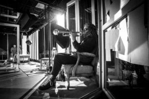 Teraz łączę ją z muzyką dźwiękami trąbki.